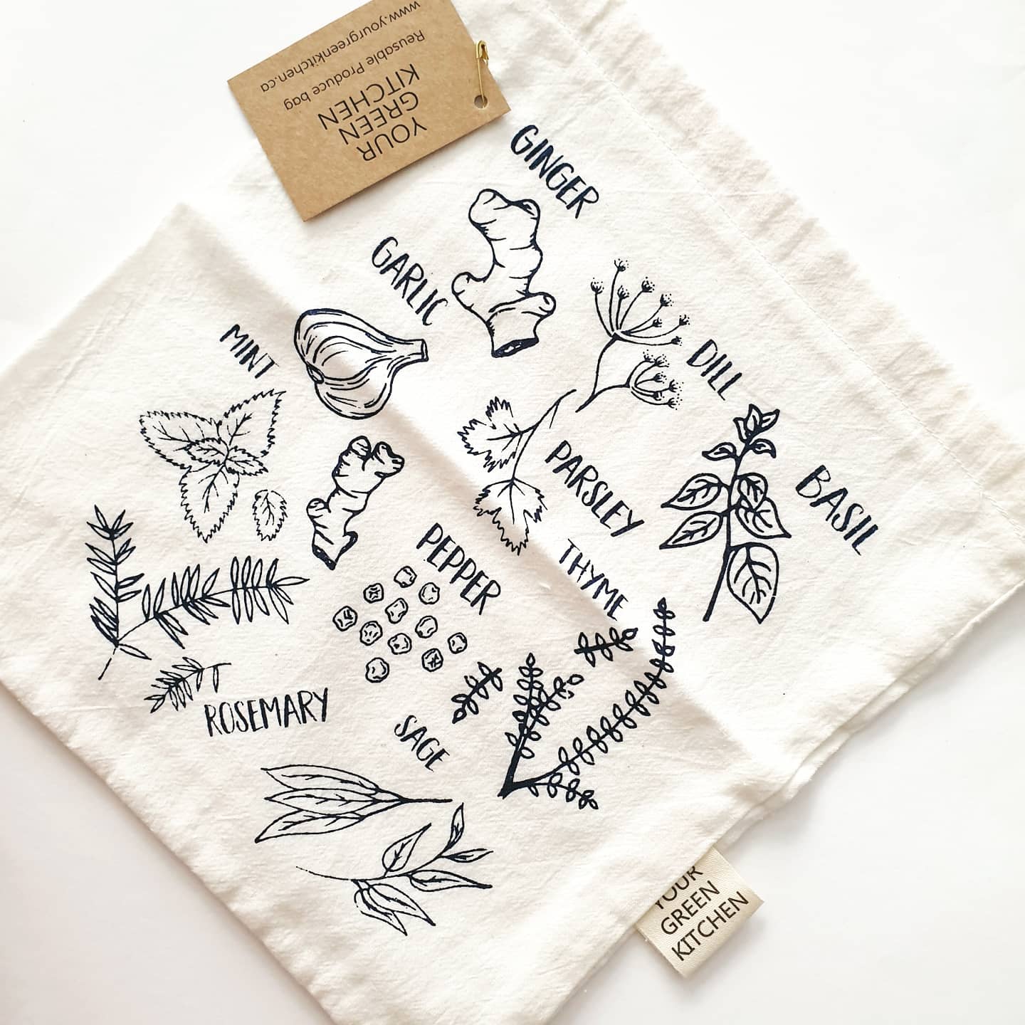 Small bag for bulk or fresh herbsAprox size: 9.5" x 7.5"GOTS certified organic cotton